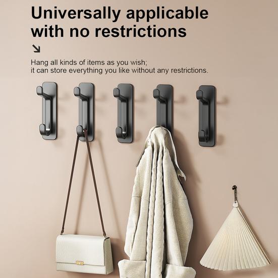 The space-saving design features upper and lower double hooks for maximum storage efficiency, keeping your items organized. Installation is a breeze with adhesive backing, eliminating the need for drilling holes. This multifunctional hook is perfect for jackets, coats, towels, keys, and wallets. Say goodbye to clutter with this versatile hanging solution!