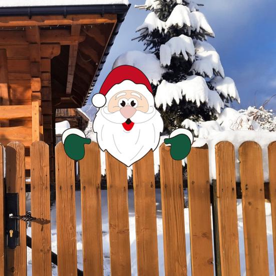 Christmas Fence Ornaments Wooden Peeking Santa Yard Decor Weatherproof Indoor Outdoor Decoration for Lawn Garden Fence