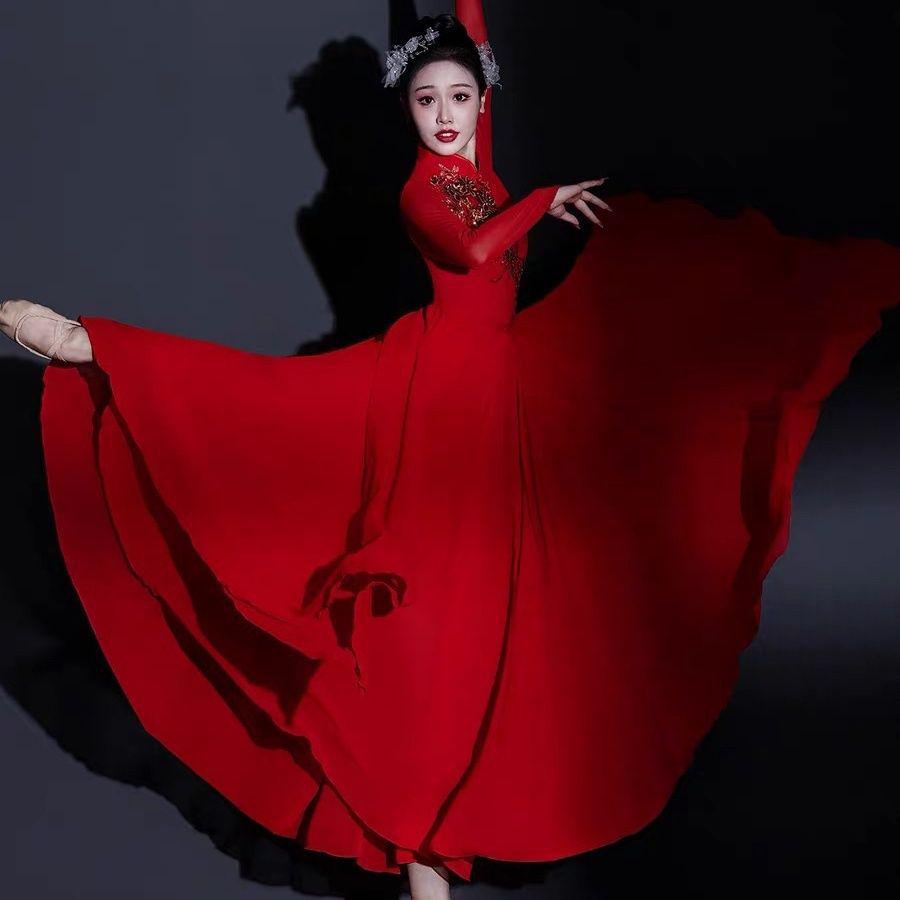 Women's Modern Dance Red Swing Skirt - 'I Love You Wanjiang' Chinese Performance Costume