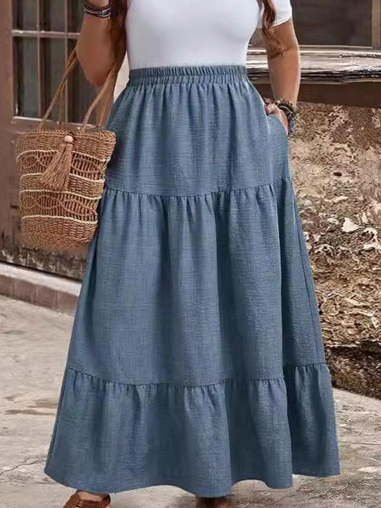 Discover effortless style and comfort with this plus size swing skirt, perfect for both travel and daily wear. Crafted from high-quality polyester, this skirt boasts a solid color design that offers versatility and can easily be paired with a variety of tops. Its lightweight and breathable fabric ensures comfort in warmer weather, making it an ideal choice for summer outings. With its flattering fit and easy-to-wear style, this skirt is a must-have addition to your wardrobe.