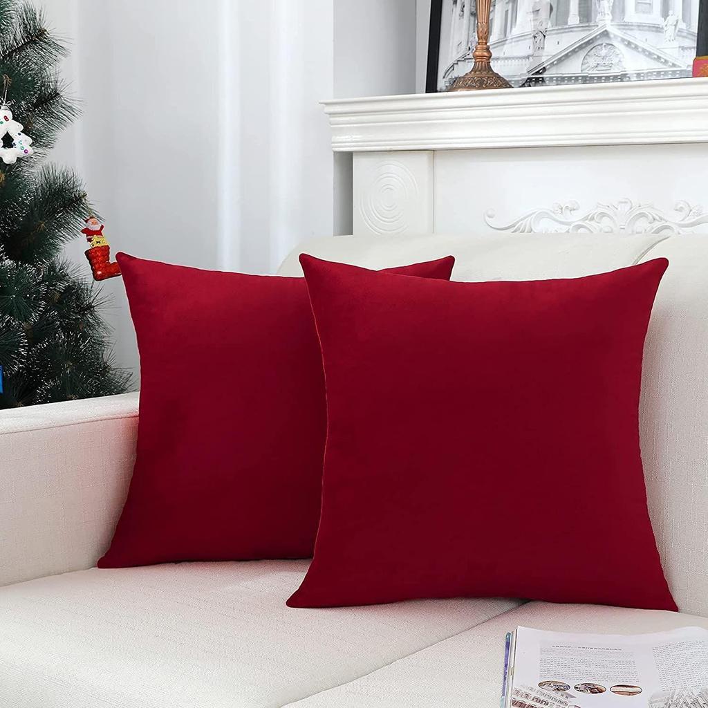 Christmas Theme Cushion Cover for Living Room Sofa (Pack of 2, 16x16 Inch, Dark Red) - Christmas Decor