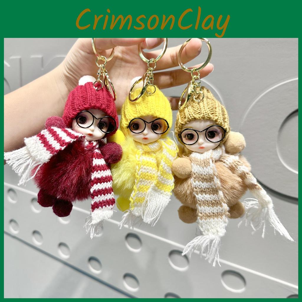 Fun Plush Big Eye Doll Keyring Colorful Scarves Unique Accessory For Bags And Keys