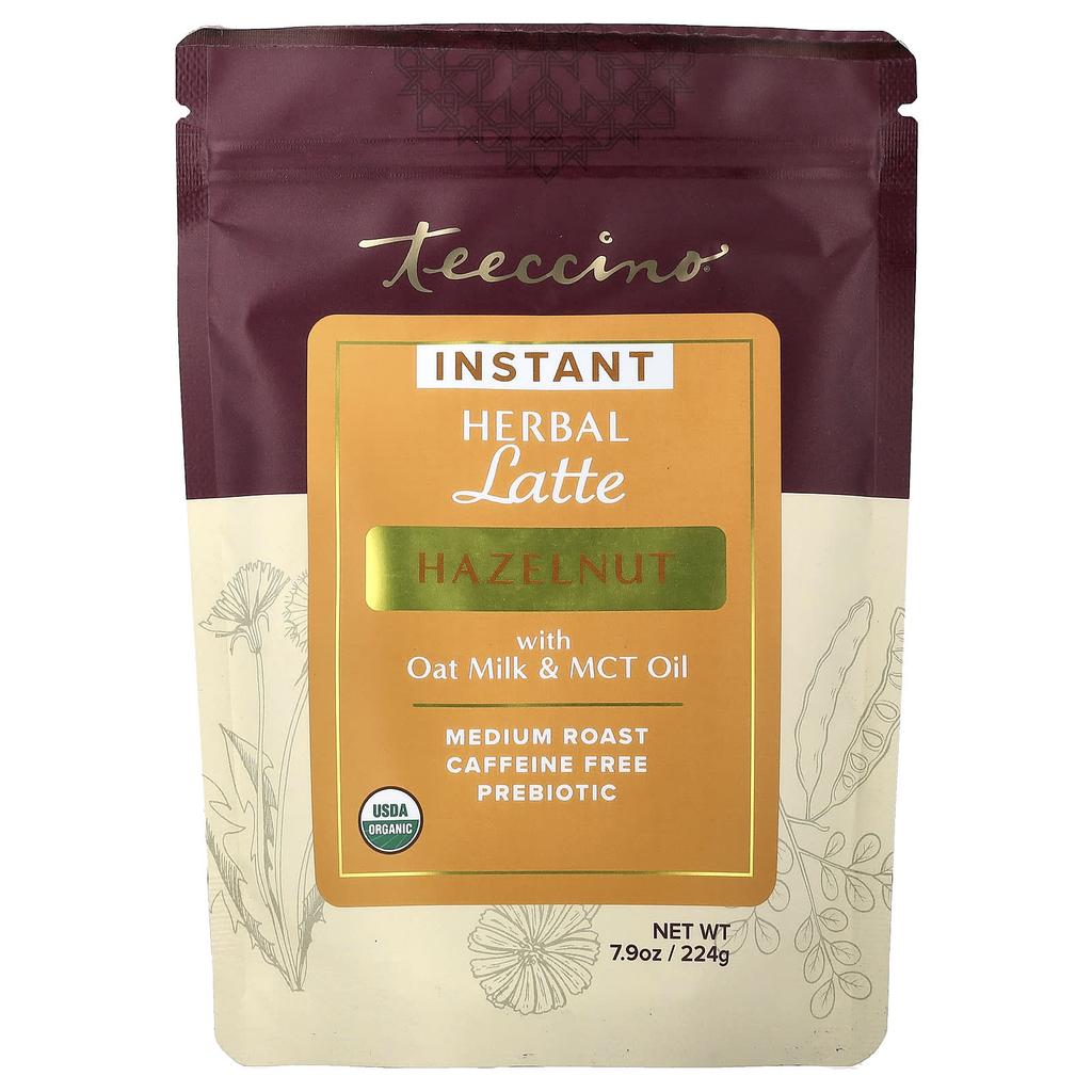 Product Description: Oat Milk and MCT Oil, Prebiotics, USDA Organic, Energy Boost, Kosher Parve, QAI Organic, Savor all the goodness of buttery hazelnut, accented with roasted coffee flavors, in this smooth, velvety, ready-to-drink latte. This café-style cup blends organic, gluten-free oat milk, coconut milk, and MCT oil, lightly sweetened with dates for a rich roasted flavor and smooth smoothness. Boost your probiotics with chicory's prebiotic, soluble fiber inulin, which promotes gut and digestive health. Boost your natural energy with Teeccino's energizing nutrients, fortified with coconut-derived MCT oil. For over 30 years, Teeccino has been creating delicious coffee alternatives that promote optimal health for people and the planet. 100% Satisfaction Guaranteed!