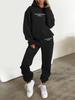 Women's Letter Print Hooded Sweatshirt & Casual Fleece Long Pants Set