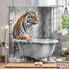 Amusing and Creative Animal Shower Curtain Waterproof Bathroom Curtain Funny Bathing Lion, Tiger and Bear Partition Bath Curtain