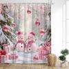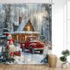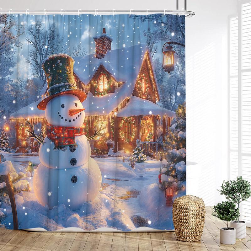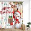 Cute Christmas Snowman Shower Curtain Winter Forest Xmas House Cedar New Year Home Bathroom Decoration Bath Curtains With Hooks