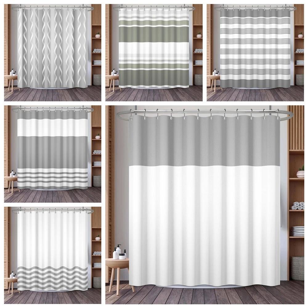 Waffle Shower Curtains Modern Hotel Style Striped Geometric Pattern Bath Decor Waterproof Polyester Bathroom Curtain with Hooks
