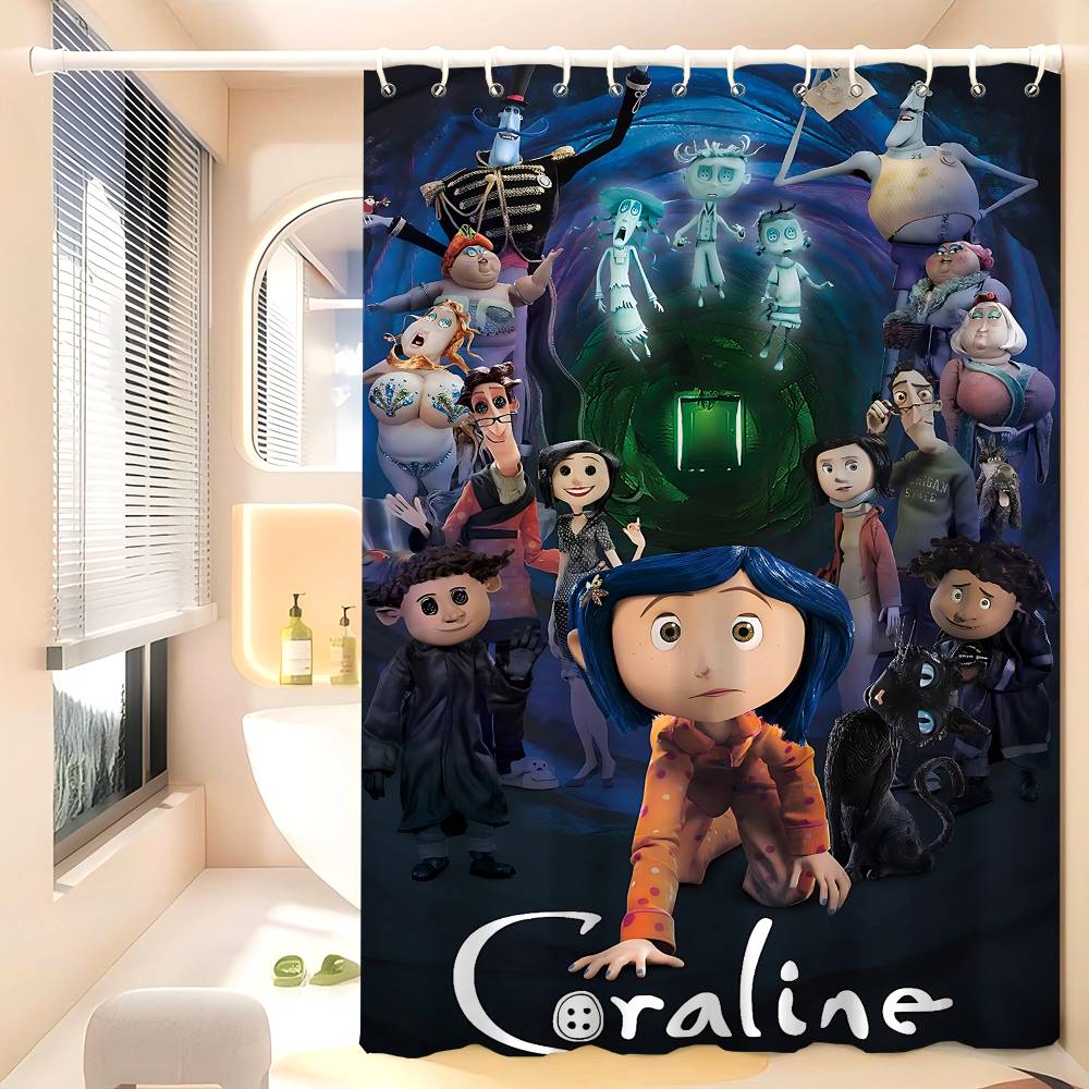 Cartoon Coraline Bathroom Curtain Classic Anime Fabric Shower Curtain With 12 Hooks Waterproof Bathroom Decor