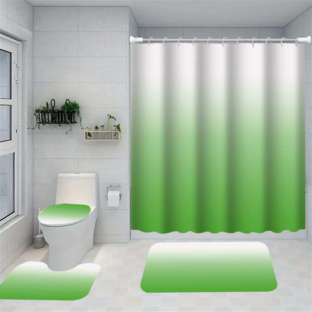 1/4 Gradient Geometry Shower Curtains, Toilet Seat Decoration, Shower Curtain with Carpet and Toilet Lid, 12 70.8x70.8 Inch Hook