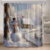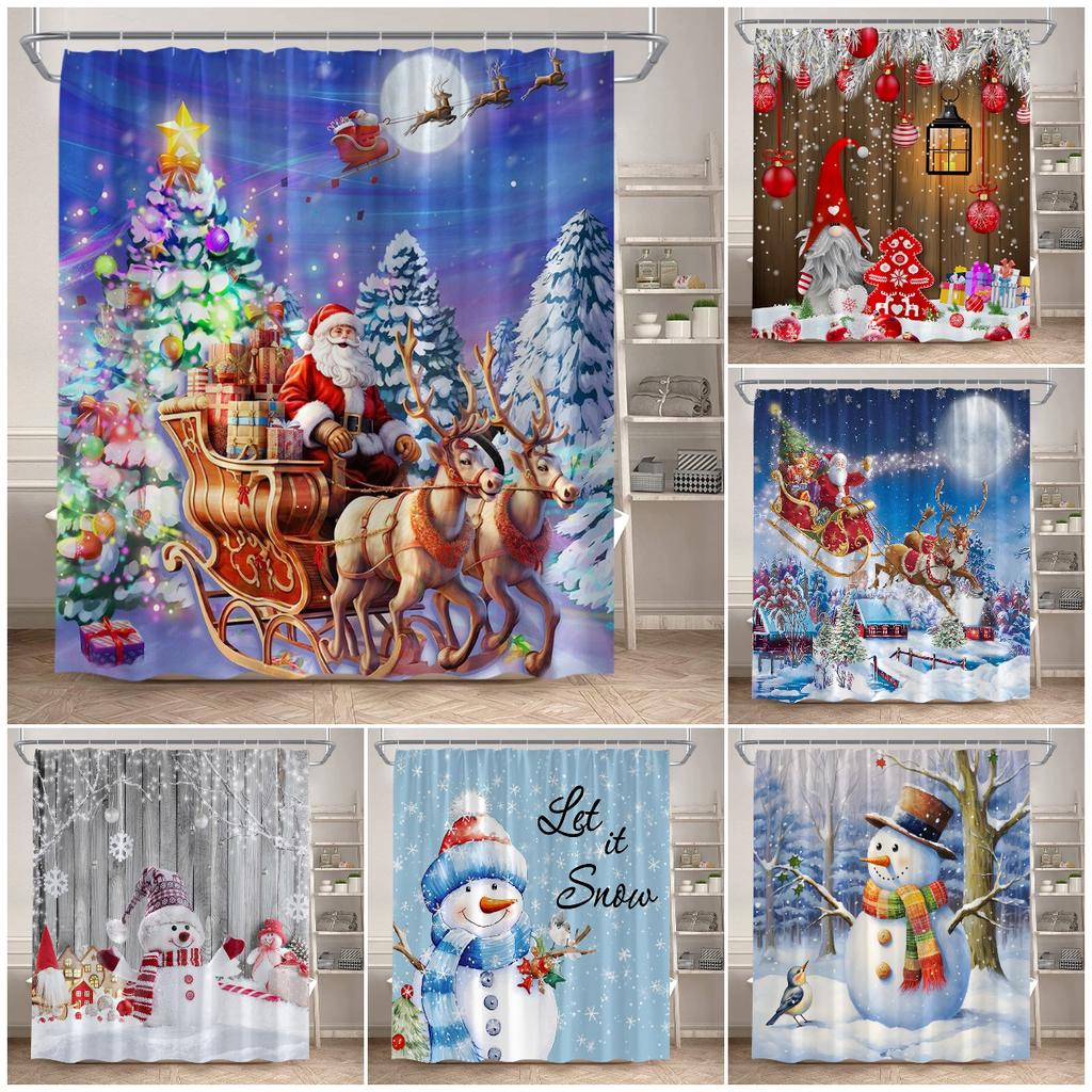 Winter Christmas Shower Curtains Funny Santa Claus Reindeer Snowman Red Xmas Balls Snow Home Bathroom Curtain Decor With Hooks