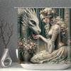 Enchanted Forest Princess And Dragon Waterproof Shower Curtain For Bathroom Decor, Unique Art Design, Vibrant Colors