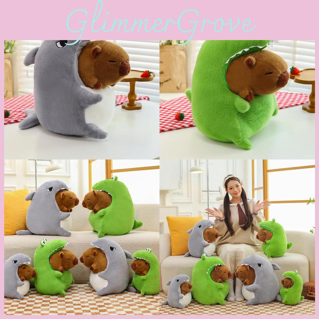 This plush toy features a unique hybrid design, combining elements of a shark, crocodile, and capybara, providing an engaging animal-themed collectible. Made of short-pile PP cotton, it offers a soft, durable touch and measures available in 12, 16, and 20 inches.