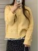 Korean Trendy Loose Single-Breasted Coat: Autumn/Winter Women's Hollow-Out Round Neck Knitted Cardigan