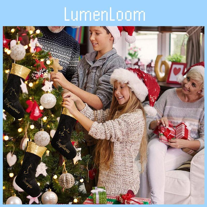 This Christmas decoration features twelve black Christmas socks, each representing the zodiac sign, crafted from durable materials, they showcase detailed zodiac symbols, adding a unique touch to holiday decor. Ideal for festive displays or themed celebrations, they support easy hanging and arrangement. Wipe clean with a damp cloth for maintenance.