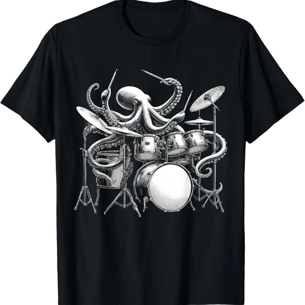 Octopus Playing Drums Retro Drummer T-Shirt