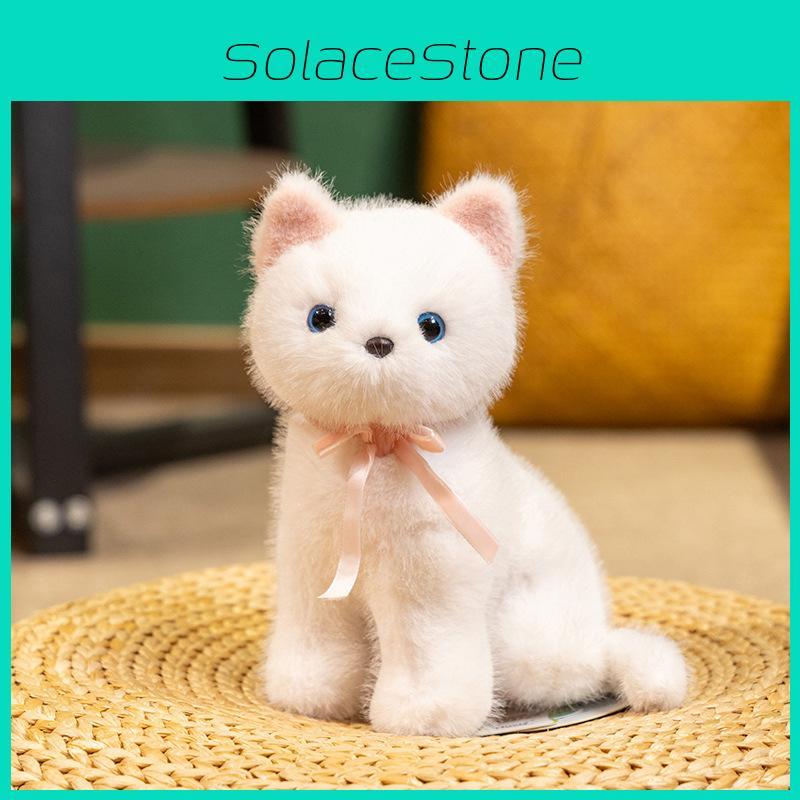 Plush Cuter Cat Doll With Squat Design And Bow Decor For Kids Birthday Gift