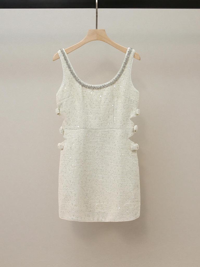 Women's Autumn Temperament Sequin Dress with Rhinestone Bow and Hollow A-Line Design