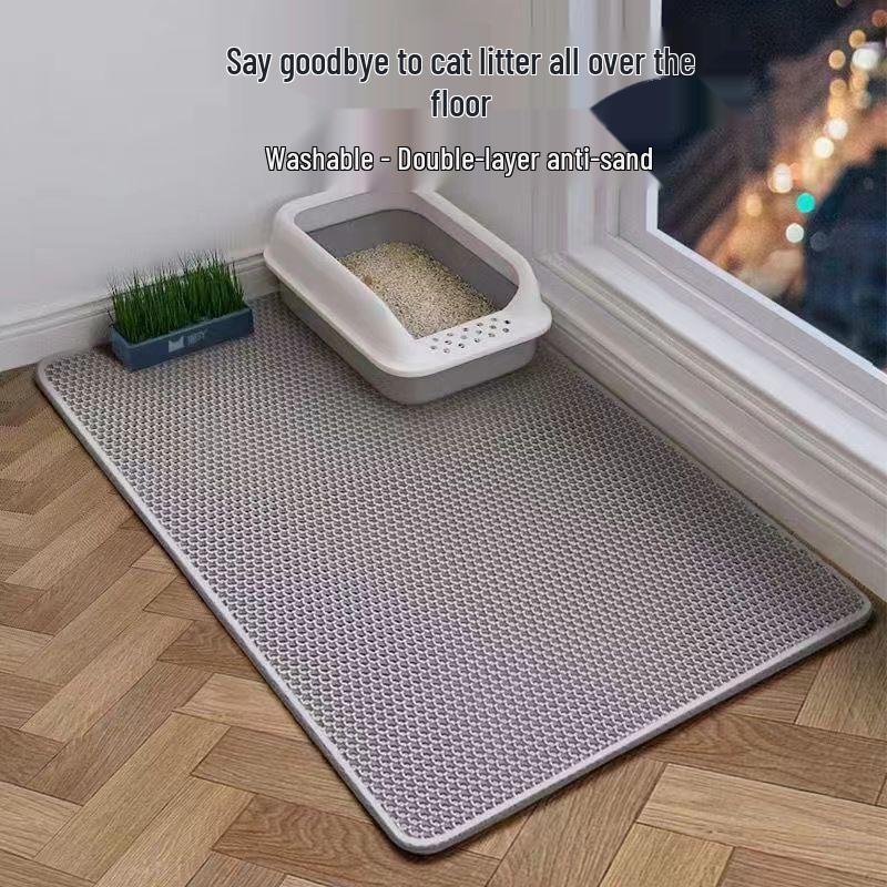 Dual Layer Cat Litter Mat: Splash-Proof, Leak-Proof with Carry-Out Prevention and Sand Control.