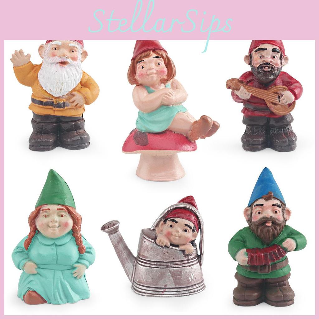 This set of PVC figurines features realistic garden dwarf characters, including family members and miniature accessories. providing detailed indoor or outdoor ornamentation. The models are static, non-assembled, and crafted without anime influences. Ideal for enhancing miniature gardens, terrariums, or fairy garden scenes, these figurines resist weather conditions and maintain their appearance over time. To preserve their details, wipe with a damp cloth as needed. Their compact size and durable material make them suitable for creative landscaping projects and decorative displays.