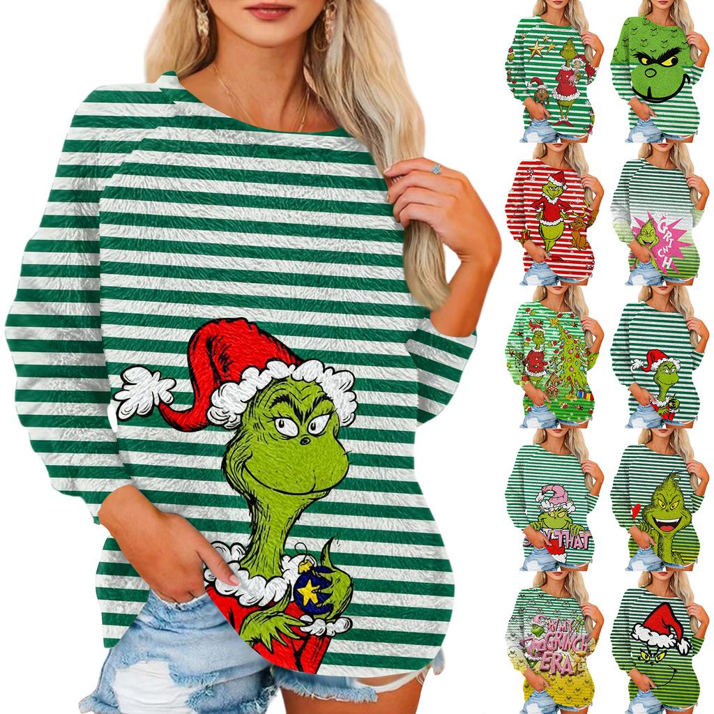 Women's T Shirt Flannel Print Tunic Long Sleeve Party Round Neck Tops