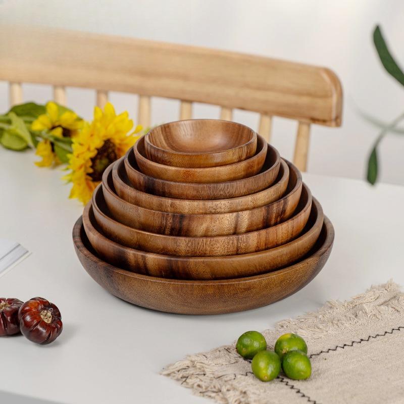 Walnut Chinese Wooden Plate Round Fruit Plate Dim Sum Plate Snack Household Storage Tray Acacia Wooden Tray