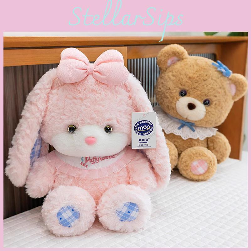 Bunny Cute Plush With Bow Pp Cotton Filling Smooth Short Velvet For Kids Gift