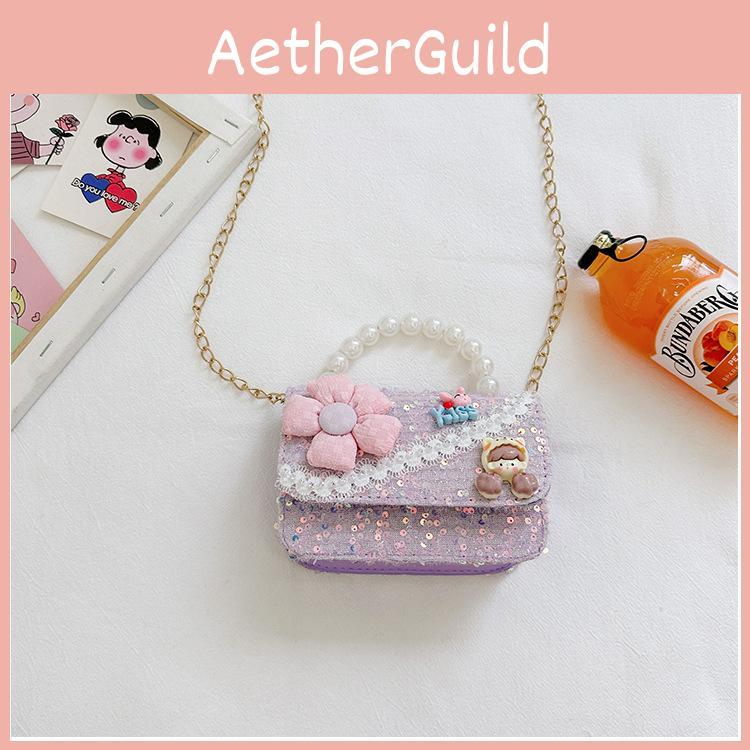 Crossbody Bag Kids With Pearls And Bow For Everyday Style Fashionable Girl