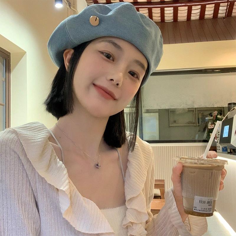 Autumn and Winter Hats Cowboy Beret Women's Korean Style All Match Face Showing Little Beret Hat Painter Hat Big Head Circumference