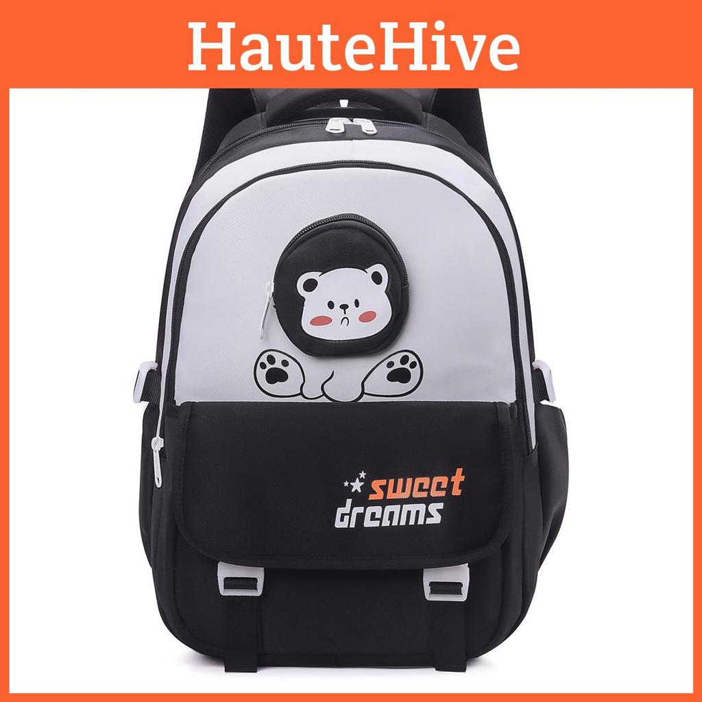 Color Contrasting Casual Backpack With Bear And Letter Print Design For Daily
