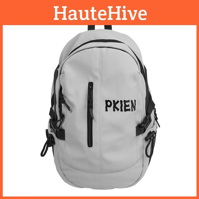 This large-capacity outdoor backpack features a lightweight nylon construction. Its ergonomic curved shoulder straps support comfortable carrying during daily commuting, travel, or school activities. Wipe clean with a damp cloth to maintain its sleek, solid-colored design with contrasting accents.