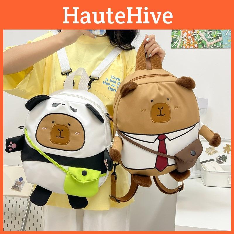 Panda Cartoon Capybara Backpack Student Cute Bag Multiple Compartments Storage