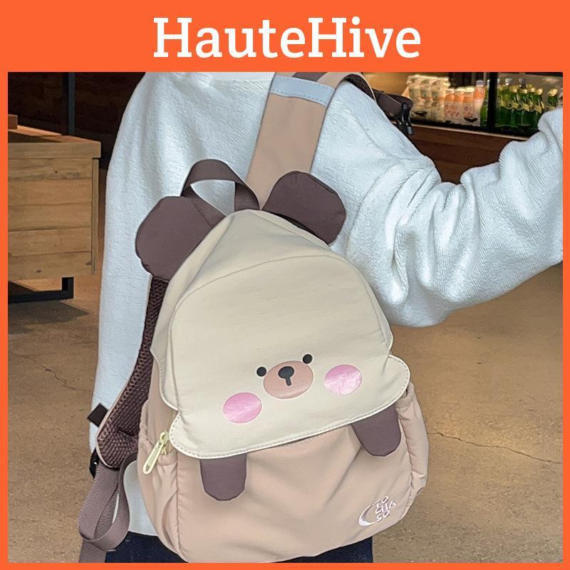 Backpack Print Bear With Cute Cartoon Pattern Students Schoolbag Gift Durable