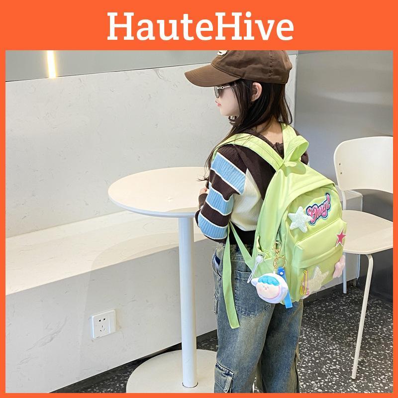 Star Contrast Color Print Nylon School Bag With Padded Shoulder For Daily