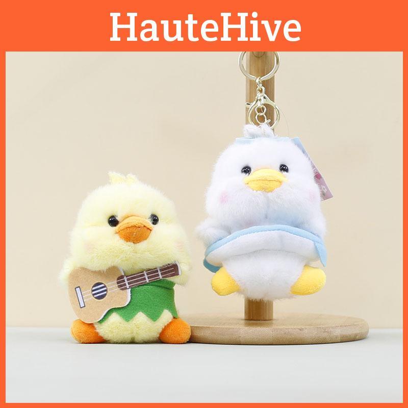 This plush keychain features a 12cm animal-shaped design resembling a guitar-themed duck or swimming ring duck, crafted with soft short plush and filled with durable PP cotton. It supports easy attachment to bags or keys, making it ideal for daily use or as a decorative accessory. Wipe clean with a damp cloth for maintenance.