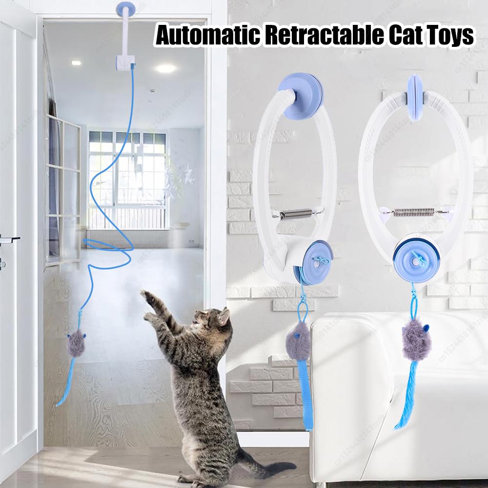 1/2pcs Retractable Door Hanging Automatic Retractable Kitten Toys with 3 Catnip Mice Independent Play Hanging Door Cat Toys for