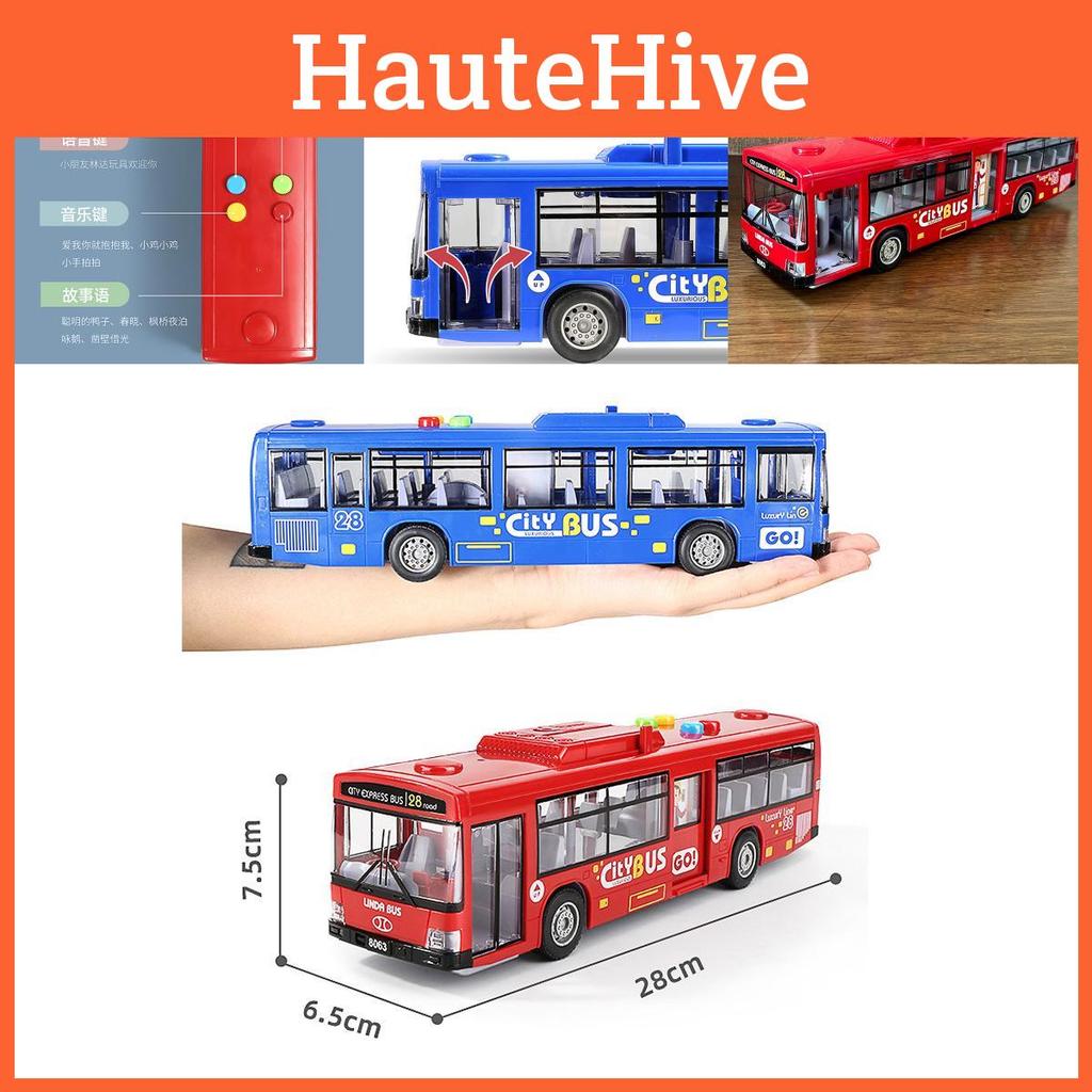 Interactive Red Bus Toy Vehicle Model With Music Stories Lights For Playtime Fun