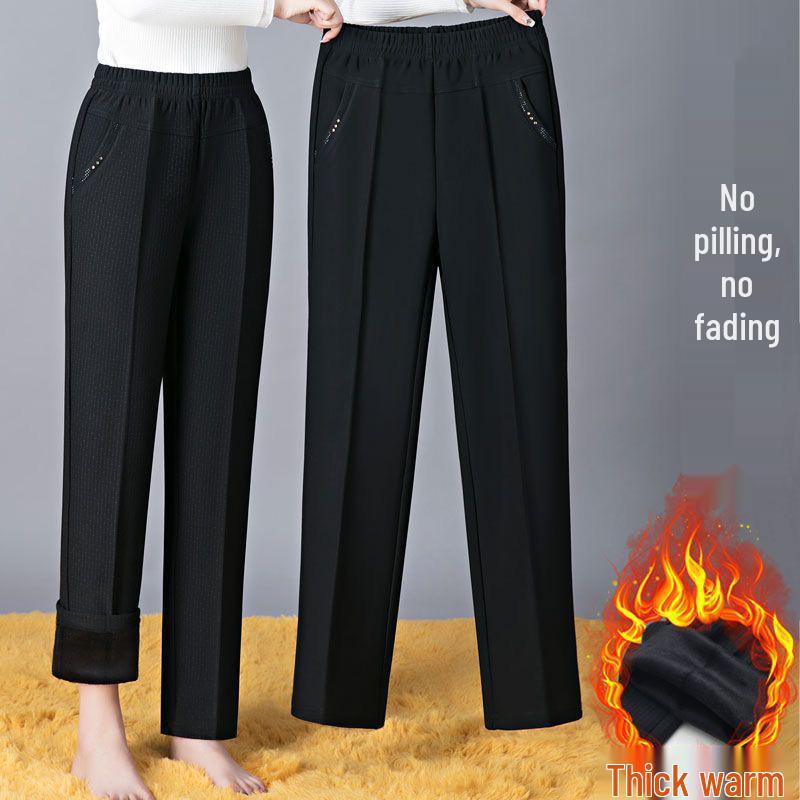 Fleece-Lined High-Waisted Straight-Leg Pants for Middle-Aged & Elderly Women - Ideal for Spring & Autumn