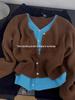 Women's Korean Style V-Neck Color-Block Knitted Cardigan Top for Autumn/Winter