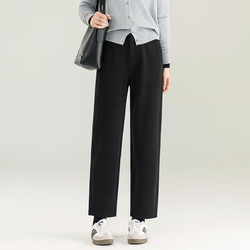 MengShuYa Women's Petite High-Waist Faux Wool Tapered Ankle Pants