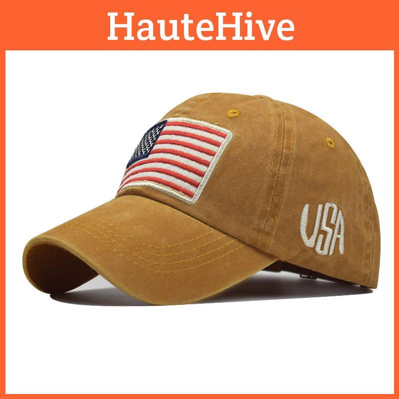 Introducing the must-have item for any fashion-savvy man - the classic American Flag baseball cap!Made from pure cotton, this vintage-style cap is perfect for adding a touch of Americana to your wardrobe.The washed-out look gives it that effortlessly cool vibe that pairs perfectly with any casual outfit.Crafted with a twill weave and embroidered with intricate stitching, this cap is not only stylish but also durable.