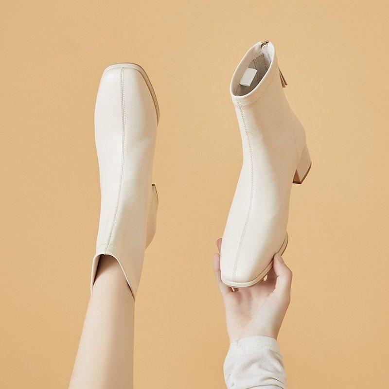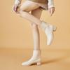 Step into elegance and comfort with these chic ankle boots, perfect for the Autumn/Winter 2025 season. Designed in a French-inspired style, these boots boast a slimming profile with a sophisticated square toe and a sturdy chunky heel, offering both fashion and functionality. The white soft leather look of the upper is crafted from durable polyurethane, ensuring a stylish yet resilient finish. Inside, the artificial plush lining and insole provide warmth and a cozy feel, ideal for cold weather. The rubber sole delivers reliable traction and stability, making these boots a versatile addition to any wardrobe. Although presented as a men's item, these boots offer a beautifully refined option for those seeking a sleek, medium-heel design.