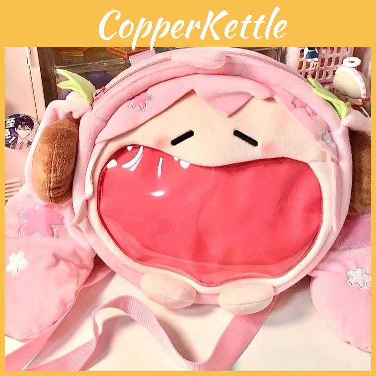Hatsune Itabag Pink Plush Tote Backpack Floral Design Outings Girls
