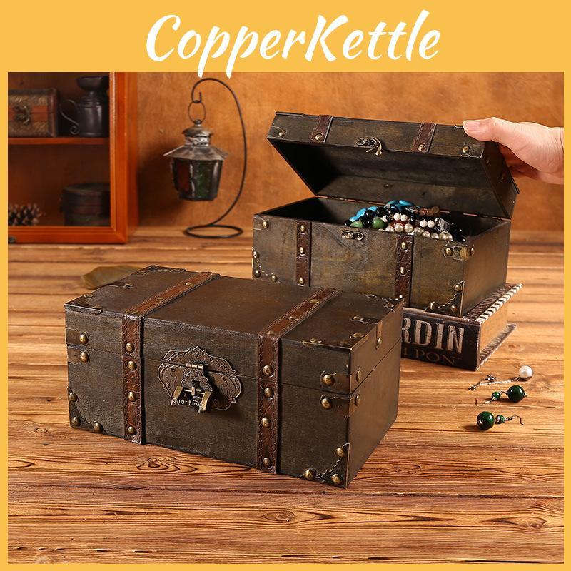 Wooden Desktop Vintage Storage Box With Lock For Home Office Organizing Decor