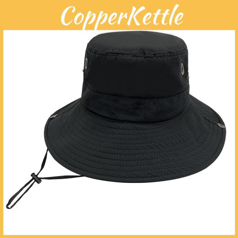 This versatile hat features a wide brim that effectively blocks harmful UV rays while providing superior ventilation for a comfortable fit. Made from durable polyester fabric, it boasts a breathable, moisture-wicking design, ensuring quick-drying capabilities during those hot days outdoors.Measuring one-size-fits-all, this hat combines practicality with style, available in various colors including black, khaki, and dark gray.