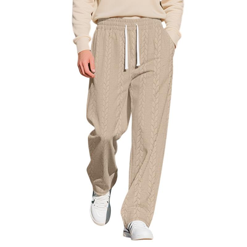 New Autumn Winter Men's Casual Sports Solid Color Jacquard Twisted Pattern Versatile Loose Drawstring Trousers