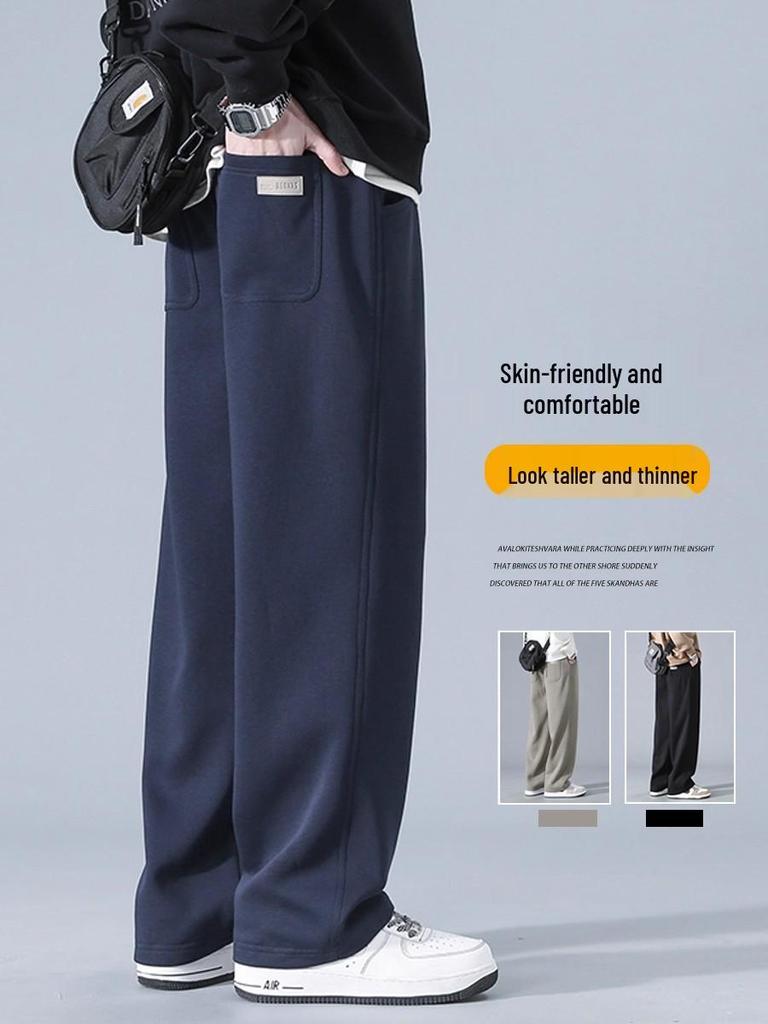 Men's American Velvet-Lined Wide-Leg Heavyweight Sweatpants for Autumn/Winter