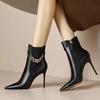 Step into the future of fashion with these elegant stiletto ankle boots designed for women. Crafted from genuine leather, these boots offer a sleek and stylish look, perfect for any occasion. The velvet lining adds a touch of luxury and comfort, ensuring a cozy fit. Featuring a convenient zipper closure, they are easy to slip on and off. The boots' rubber soles provide excellent durability and traction, while the artificial plush insole and lining promise warmth and comfort, making them an ideal choice for colder seasons.
