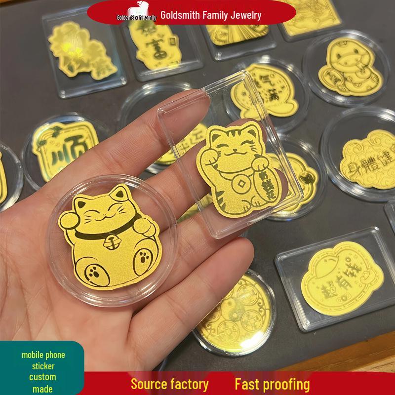 Shuibei 999 Fine Gold Phone Sticker 2mg: God of Wealth, Persimmon, Lucky Cat Amulet Souvenir Gift.
