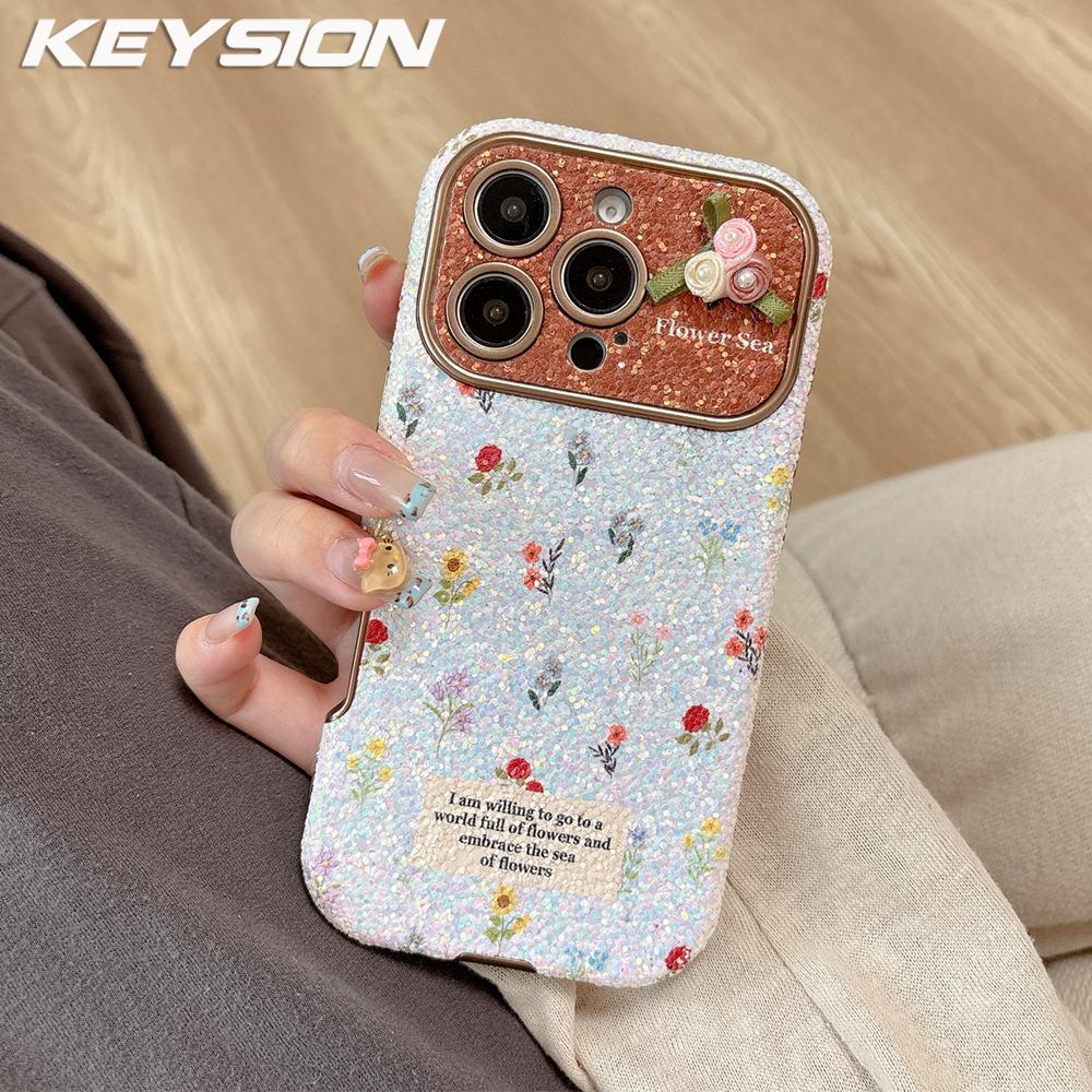 KEYSION Women Girl's Retro Floral Flower Phone Case for iPhone 14 15 16 17 Pro Max Rounded Edges Silicone Shockproof Back Cover