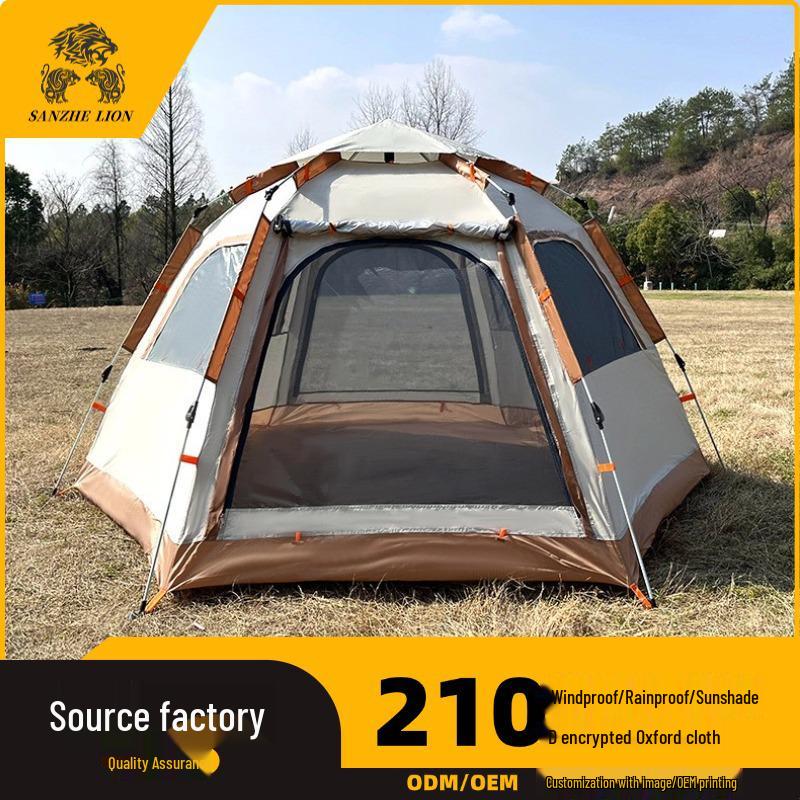 Portable Hexagonal Outdoor Tent - Quick Open, Folding, Ideal for Camping, Parks, and Family Leisure